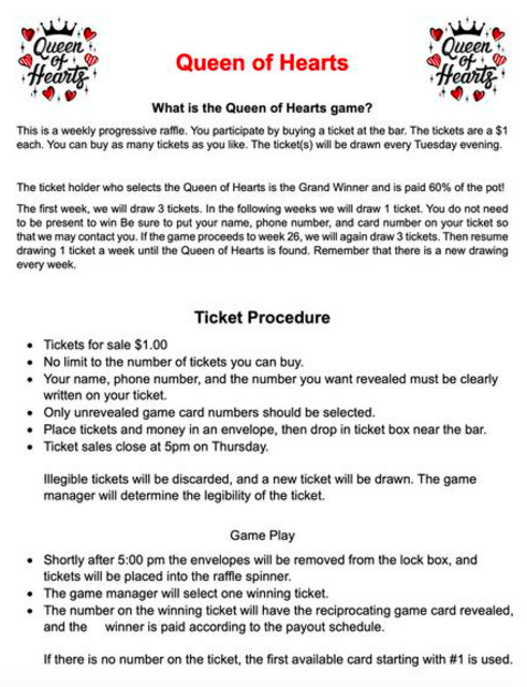 Check out the new(ish) Queen of Hearts game at the hall....You could be the next big WINNER!!!!